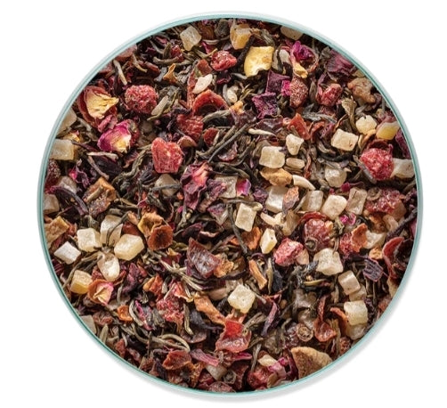 This blend contains herbal, white, and green teas with an abundance of superfruits for an antioxidant boost.