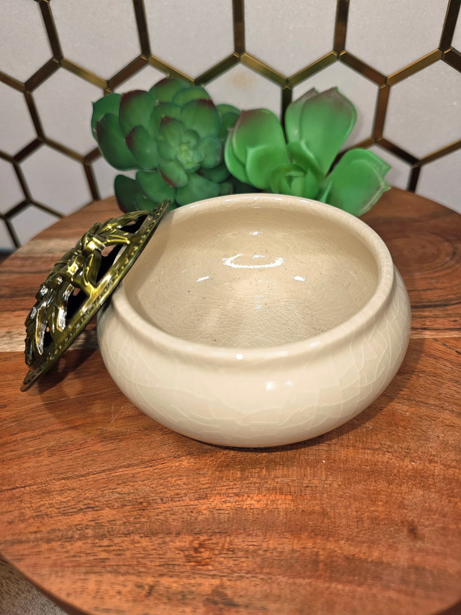 White Ceramic Incense Burner Bowl with Floral Lid – 3.75