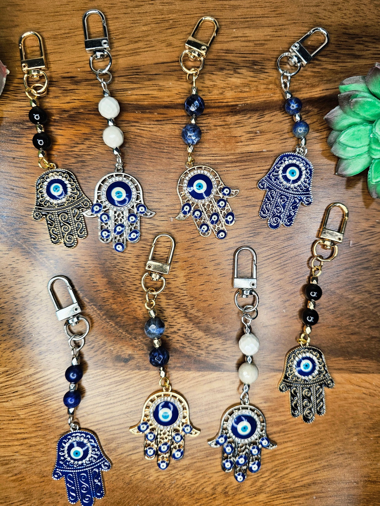 Hamsa & Crystal Bead Key Chains with Charms