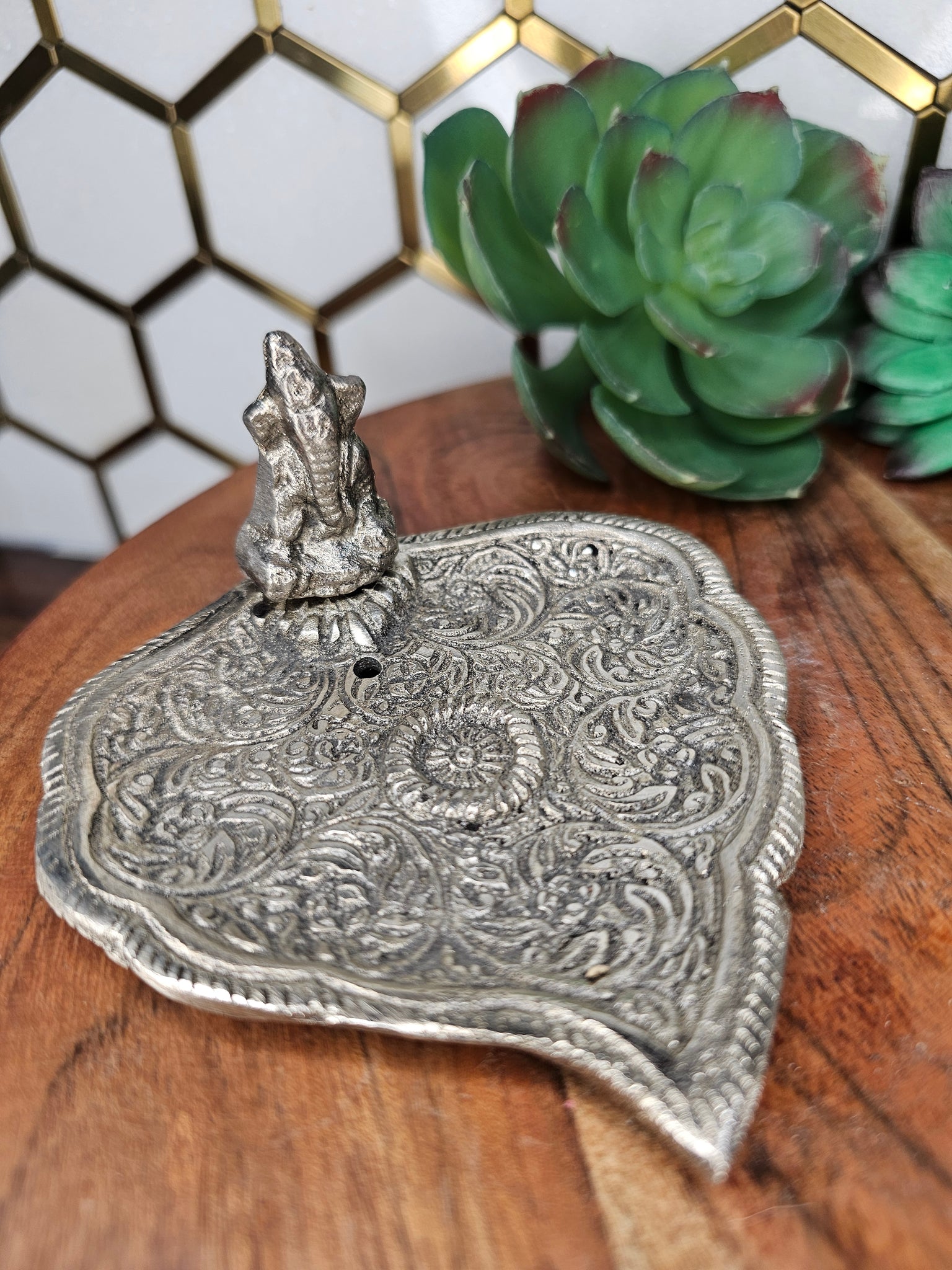 Ganesha (the remover of obstacle) Metal Burner for burning sticks and cones. Size 3 3/4" x 3 1/2" x 1 3/4"